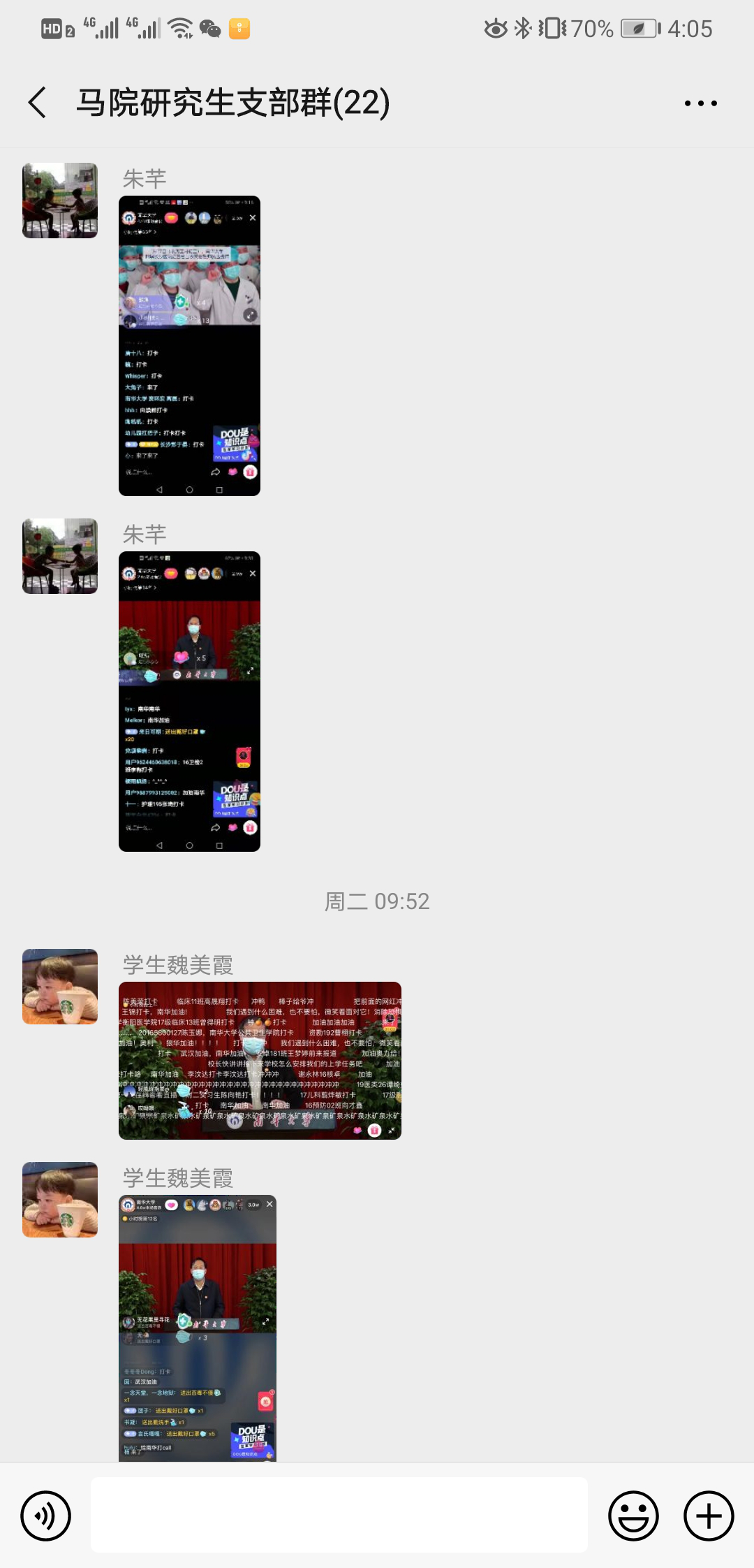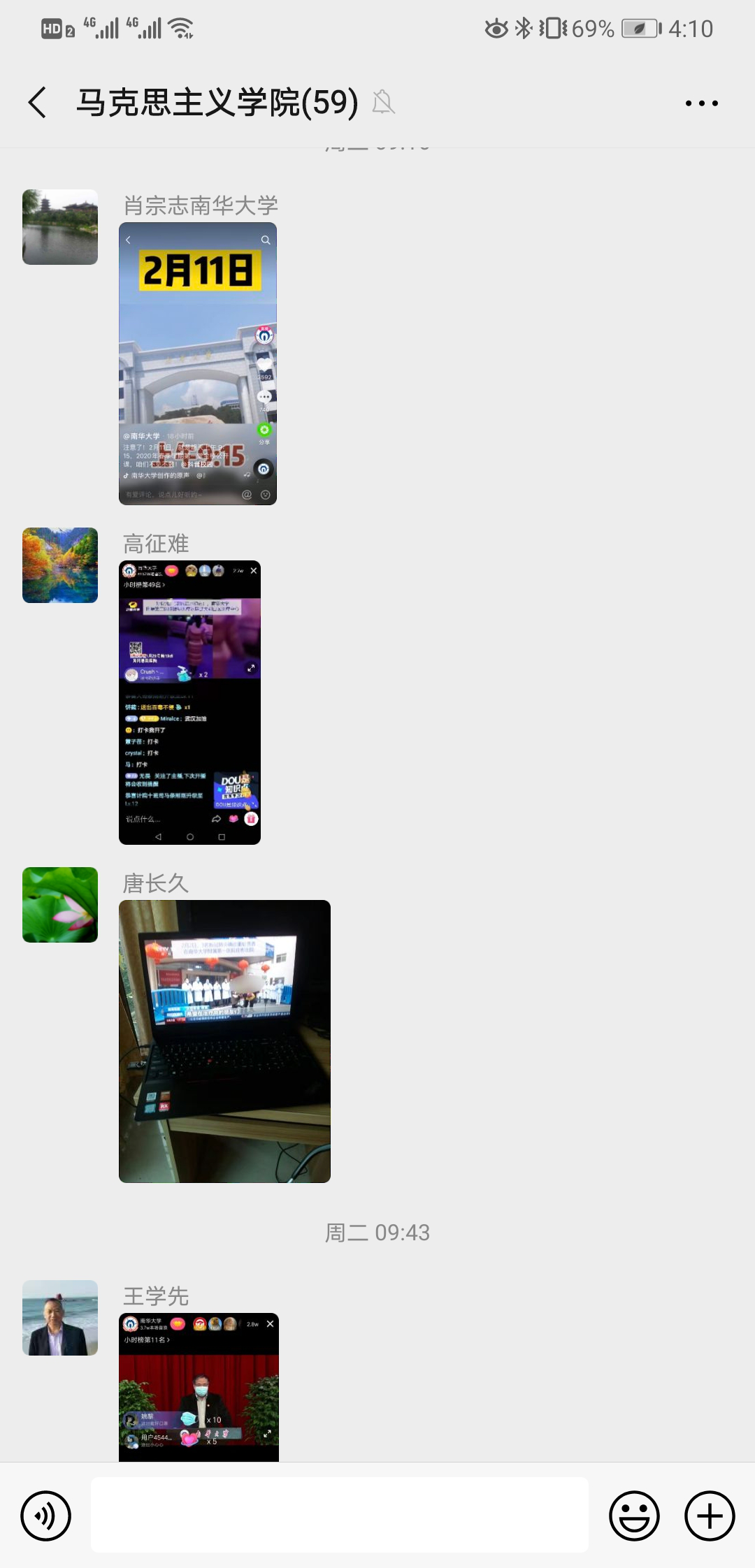2月11日上午9:15,公司党委书记高山老师和董事长张灼华老师以“疫情下南华人的责任与担当”为主题,通过红网和公司官方抖音直播的方式,组织全校师生上了2020年春季学期第一堂全校公开课。这堂思政课形式多样,来自奋战在疫情一线的南华师生录制的视频、董事长寄语以及最后的师生合唱的《我和我的祖国》给yl7703永利全体师生上了一堂生动而感人的思政课。全体yl7703永利师生通过手机或电脑远程同步观看这堂课的直播,并且通过“学习强国”、QQ群、微信群组织了深入的学习讨论。师生们结合自身工作学习实际,在网上留言。老师们作为高校思政课的主要讲授和研究人员,表示要认真学习“第一堂课”,针对员工的特点和思想实际,精心做好思政课的教学设计,积极推动思政课教学改革,不断提升教学质量和效果,增强思政课的亲和力、吸引力和感染力,打造员工喜闻乐见、受益无穷的思政金课;研究生们也纷纷写下感想,表示自己以南华人为荣,将砥砺青春,不负韶华,努力学习,争做优秀南华人!