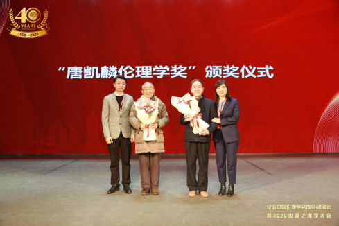 2020年12月5日,纪念中国伦理学会成立40周年暨2020中国伦理学大会在无锡召开。本届大会由中国伦理学会、无锡市委宣传部及江南大学共同主办,中国人民大学伦理学与道德建设研究中心协办。大会围绕“伦理学与国家治理”这一主题,设置了一场主题报告会和“伦理学与国家治理”、“马克思主义伦理思想”、“伦理学基础理论”、“疫情防控伦理”“立德树人”等八个专题论坛。来自全国伦理学界的专家学者,相聚太湖之滨,为国家治理、道德建设提供伦理学智慧方案。本次大会议程包括:播放学会40周年纪念专题片、开幕式致辞、“唐凯麟伦理学奖”颁奖仪式、集体合影、主题演讲、分论坛交流、主旨发言、分论坛综合发言、闭幕总结。