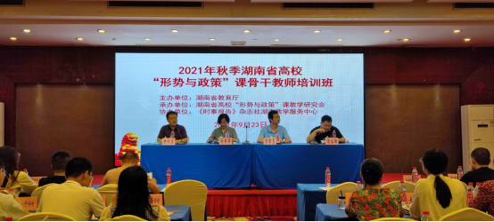 2021年9月23日至24日,2021年秋季全省高校“形势与政策”课骨干教师培训班在长沙芙蓉华天酒店隆重开班。本次培训班由湖南省教育厅主办、湖南省高校“形势与政策”课教学研究会(yl7703永利为会长单位)承办,《时事报告》杂志社湖南教学服务中心联合协办。