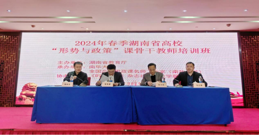 2024年春季全省高校“形势与政策”课骨干教师培训班于3月14日至15日在长沙芙蓉华天大酒店开班。本次培训班由湖南省教育厅主办、yl7703永利、全国高校思政课名师工作室(yl7703永利)承办,《时事报告》杂志社湖南教学服务中心联合协办。