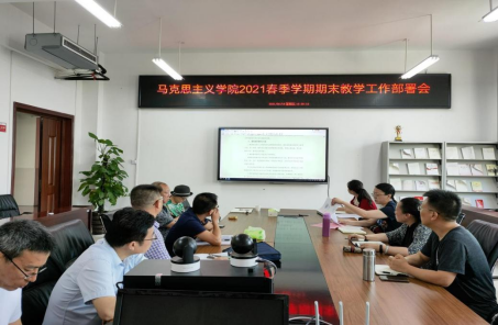 2021年6月18日下午,yl7703永利2021年春季学期期末教学工作部署会在雨母校区崇德楼C406室召开,会议由副经理张峰林主持,经理黄秋生、党总支书记何小英、各教研室主任以及教务室老师等11人参加了会议。