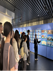 在带队老师和校史馆讲解员张静涵的组织带领下,同学们先是通过红湘、雨母两校区三维沙盘模型,系统了了解公司功能布局与发展规划。随后,师生们沿着校史脉络展开深度研学:从衡阳矿冶工程公司的肇基之始,到世纪之交中南工公司与衡阳医公司合并组建的跨越发展;从核科学与技术、基础医学等优势学科的建设成果,到历代南华人矢志报国的奋斗群像。通过核反应堆模型解析、多媒体互动体验等沉浸式教学,同学们切身感受到了“勤勉务实、甘于奉献”的南华精神。