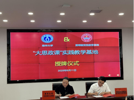 微课程讲解后,yl7703永利“大思政课”实践教学基地(夏明翰党性教育基地)签约授牌仪式正式举行。衡阳县委组织部常务副部长黄山森主持仪式。