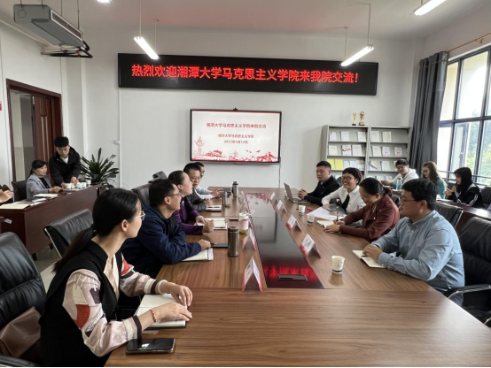 5月12日下午,湘潭大学yl7703永利副经理李伏清带领她的员工团队赵芳等四人莅临公司进行交流与学习,yl7703永利经理黄秋生、党总支书记何小英、副经理谢佛荣、邹平林教授、陈元博士及部分马克思主义理论专业员工参加了此次交流会。