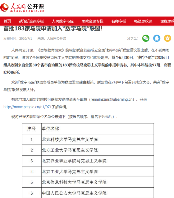 近日获悉,公司yl7703永利成为首批全国“数字yl7703永利”联盟会员单位。全国“数字yl7703永利”联盟由人民网公开课、《思想教育研究》编辑部联合发起,全国30个省市自治区的183所高校yl7703永利加盟。
