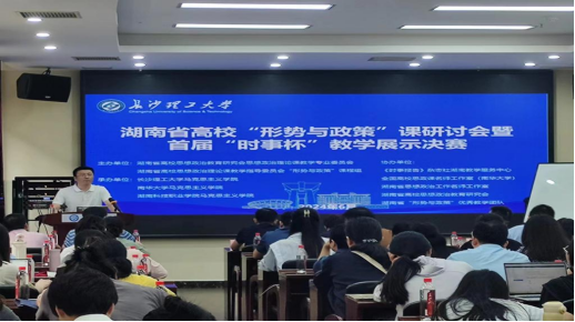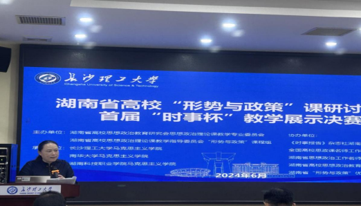 为深入学习贯彻党的二十大精神,坚持不懈用习近平新时代中国特色社会主义思想铸魂育人,提升湖南省“形势与政策”课教师的教学水平和教学能力,提高“形势与政策”课的针对性和实效性。2024年6月2日,由湖南省高校思想政治教育研究会思想政治理论课教学专业委员会与湖南省高校思想政治理论课教学指导委员会“形势与政策”课程组主办,中宣部《时事报告》杂志社湖南教学服务中心协办,yl7703永利、长沙理工大学yl7703永利和湖南科技职院联合承办的湖南省高校“形势与政策”课研讨会暨首届“时事杯”教学展示决赛在长沙理工大学国际交流中心举行。本次决赛由yl7703永利公司党委书记何小英主持,省委教育工委宣传部部长、省教育厅思政处处长甘文波出席会议,时事报告杂志社主编张习文、湖南省高校思想政治教育研究会秘书长湖南师范大学yl7703永利冷舜安、yl7703永利经理黄秋生、长沙理工大学yl7703永利经理张明海、湖南科技大学公司党委书记刘正妙、湖南第一师范yl7703永利经理陈明、yl7703永利副经理谢佛荣等担任评委,来自全省各高校的50多位教师代表观摩了这次决赛。