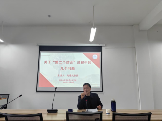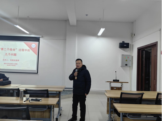12月26日下午,应yl7703永利邀请,湖南省社会科公司原经理、党组书记、湖南省人民政府参事刘建武教授在yl7703永利雨母校区崇德楼418报告厅作了题为《关于“第二个结合”过程中的几个问题》的学术报告。本次学术报告由黄秋生经理主持,党委副书记张峰林,副经理周江平出席,公司部分教师和在校研究生积极参加了此次学术活动。