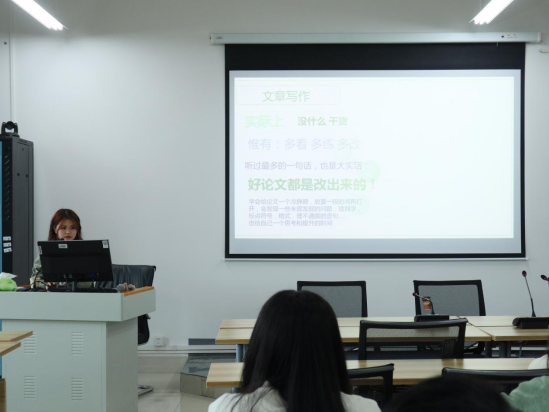 郭佳慧同学主要从论文选题、文章写作、爬梳文献以及参加学术会议这四个方面展开学术分享。首先,在论文选题方面,她表明选题一定要抓住热点、盲点和重点,这三个点是选题的关键所在。其次,在文章写作方面,郭佳慧同学表示好论文都是改出来的,唯有多看多练多改,才能写出高质量论文,同时要学会给论文一个冷静期,放置一段时间再打开会有新的收获。再次,在爬梳文献方面,她通过自身平常对查阅文献的经验摸索,推荐了大量相关网站,并强调在写作过程中要先将引用的文献标注出来,以防找不到出处。最后,在参加学术会议方面,郭佳慧同学指出要依序按照会议论文投稿、中稿后打印邀请函参会、打印车票并开酒店发票、会议开始前准备好汇报PPT、返校后准备好报销材料进行报销这五个流程进行,确保万无一失。