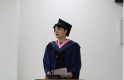 张峰林老师代表全体硕士研究生导师发言,向毕业生表示衷心祝贺和真挚祝福,希望毕业生们往后可以一直保持内心充盈自喜的态度和刻苦钻研的精神迈步向前,达到自己理想的目标。