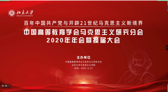2020年12月27日,百年中国共产党与开辟21世纪马克思主义新境界中国高等教育学会马克思主义研究分会2020年年会暨换届大会在北京大学中关新园召开。中国高等教育学会副会长、教育部原副部长林蕙青出席会议并讲话。北京大学党委书记邱水平致开幕辞。中组部前部长张全景致贺信。教育部原副部长朱新均,中国政治学会会长、中国社科院原副经理李慎明,北京大学党委常务副书记于鸿君,党委副书记安钰峰,中国高等教育学会马克思主义研究分会首任会长、教育部社科中心原主任田心铭,中国政治经济学会会长、中国社科院学部委员程恩富,《求是》杂志社原副总编、中国红色文化研究会会长刘润为,《思想理论教育导刊》资深编审任大奎,北京大学yl7703永利教授仝华,中国高等教育学会马克思主义研究分会第四届理事会理事长、中国人民大学yl7703永利原经理郝立新等三十多位领导、专家和学者线下出席会议。全国多所高校yl7703永利经理、专家和学者二百余人通过视频连线出席会议。