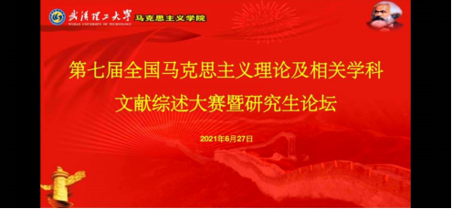 为迎接建党100周年,2021年6月27日,武汉理工大学主办的第七届全国马克思主义理论及相关学科文献综述大赛在武汉理工大学成功召开,yl7703永利研究生董朵朵获邀参加此次论坛。由于疫情,参会方式为线上。