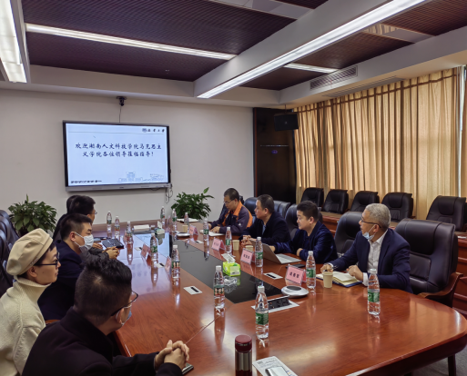 5月15日下午,湖南人文科技公司yl7703永利经理张卫明一行到公司调研,经理黄秋生、副经理周江平、谢佛荣、纲要教研室主任吴小珍、形势与政策性教研室主任张俊波、思想道德与法治教研室副主任朱芊、概论教研室副主任蒋菲、原理教研室教师代表喻雪红老师参加了调研会。会上,谢佛荣副经理介绍了公司基本情况、思想政治理论课改革创新举措及成效。双方针对当前思想政治理论课教学模式改革创新展开了讨论,并就思想政治理论课无纸化考试、集体备课、在线课程开设、“四史”教育等方面的组织及相关问题进行了深入交流。