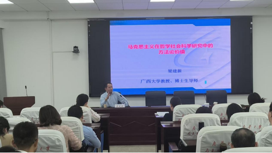 2025年3月27日下午,广西大学yl7703永利副经理、博士生导师梁建新教授受邀莅临公司南华楼1408会议室,为师生带来了一场题为《马克思主义在哲学社会科学研究中的方法论价值》的学术讲座,并就2025年国家社科基金课题申报的要点进行了专题指导。本次会议由yl7703永利经理代艳丽教授主持,公司师生代表积极参与。