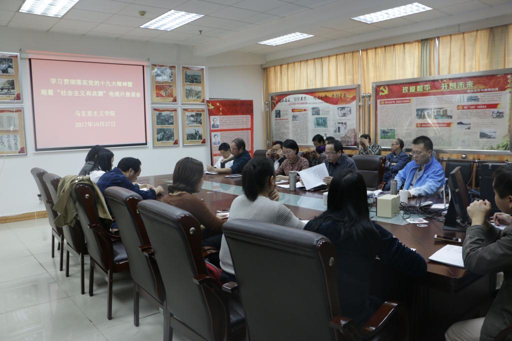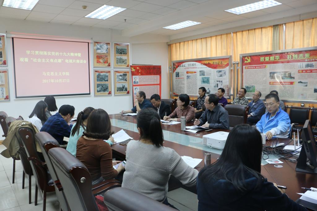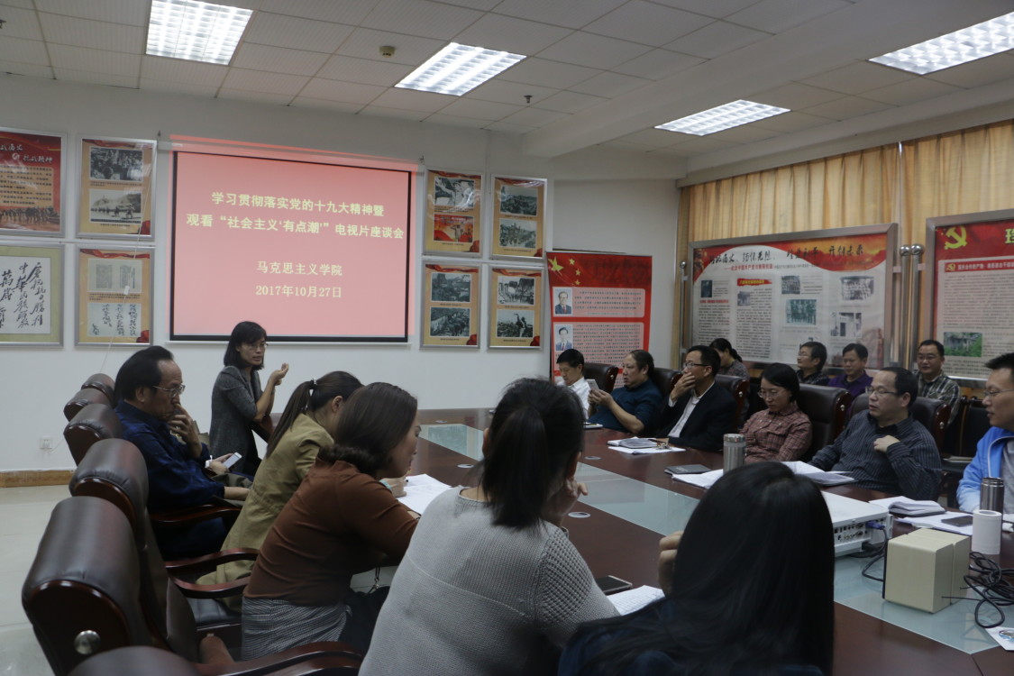 为迎接党的十九大隆重召开,湖南省委宣传部制作了“社会主义有点潮”电视片。yl7703永利教师们在观看后感触良多,并给予高度评价。在座谈会上,公司副经理、黄秋生教授从“乌托邦”的起源、现实社会意义等方面谈了自己观看该电视片的体会。张俊波、王慧、徐艳红、李晓衡和赵玉华等老师分别围绕“《共产党宣言》是一本什么书?”、“阿芙诺乐号为什么会开炮?”、“南湖的红船为什么能破浪前行”、“中国特色社会主义‘特'在哪?”以及“中国梦是个什么样的‘梦’?”等主题,阐述了自己的观后体会。通过座谈会,大家更深刻认识到中国走科学社会主义是必由之路,十月革命爆发、中国共产党成立和中国特色社会主义具有历史必然性,进一步坚定了马克思主义的信仰和中国特色社会主义的信心。老师们纷纷表示,作为高校思想政治理论课教师,认真学习贯彻、研究和宣传党的十九大精神是义不容辞的责任,并尽早做好十九大精神进教案、进课堂、进科研、进员工头脑的工作。肖宗志最后做了总结,他认为老师们的发言有深度、有温度,体现了yl7703永利的水平。希望大家不忘初心、牢记使命,并以公司成为湖南省重点yl7703永利为契机,加强对十九大精神的学习、宣传和研究,在新时代中国特色社会主义思想的指引下,奋力争先,积极有为。