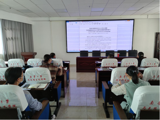 会上,经理黄秋生、第三教师党支部书记杜早华作中心发言。黄秋生指出报告既对国内外形势做了研判,总结经验,也对未来进行科学规划。结合公司的发展现状,他强调,公司的发展需要全院师生同心协力、共同建设。杜早华认为要把“推动绿色发展,促进人与自然和谐共生”融入高校生态文明教育,要做到:一是树立“绿”的生态文明意识,二是制定“绿”的生态文明制度,三是践行“绿”的生态文明行动。何小英最后强调要全面把握和深刻领会二十大的精神实质,切实把思想和行动统一到实现中华民族伟大复兴的事业中来,自觉把二十大的内容融入《思想道德与法治》《毛泽东思想和中国特色社会主义理论体系概论》、《新时代中国特色社会主义理论与实践》等思政课堂;同时还提出了结合“三会一课”开展“一课一片一实践”、“微党课”等支部建设活动。