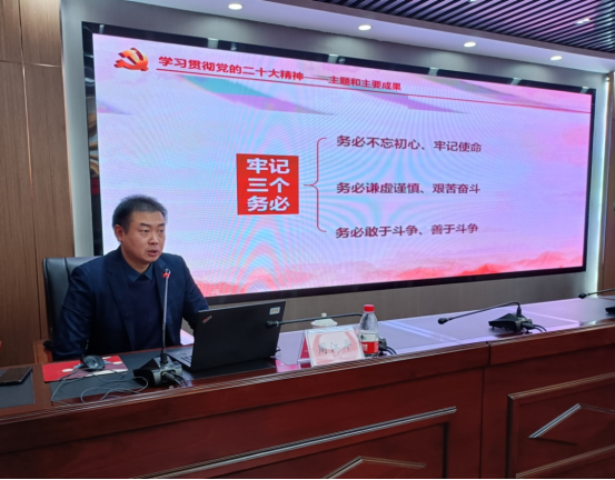 周江平以《谱写新时代中国特色社会主义更加绚丽的华章》为题,从准确把握党的二十大的主题和主要成果、深刻认识党的二十大的重要意义、认真领会党的二十大精神的核心要义、全面推进党的二十大精神落地落实等四个方面,对党的二十大精神进行深度解读。报告主题鲜明、重点突出,旁征博引、内涵丰富,具有很强的政治性、思想性、理论性和实践性。