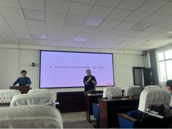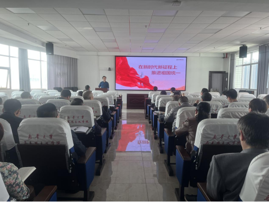 2023年3月10日下午,yl7703永利在红湘校区南华楼1408室开展二十大精神宣讲报告会。会议由公司党总支书记何小英主持,全体教职工参加。公司党委委员刘文君在会上作“在新时代新征程上推进祖国统一”的主题报告。