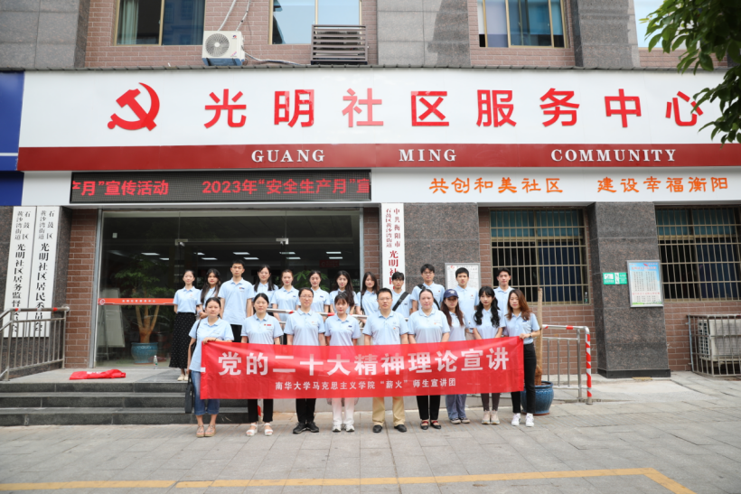 为扎实抓好主题教育,推动学习贯彻习近平新时代中国特色社会主义思想走深走实,同时充分发挥高校的学科优势、人才优势、平台优势,6月16日,yl7703永利“薪火”宣讲团一行22人赴黄沙湾街道光明社区开展党的二十大精神宣讲活动。yl7703永利党委书记何小英、经理黄秋生、党委副书记张峰林,石鼓区委、黄沙湾街道以及光明社区有关领导,光明社区工作人员、党员及群众代表等100余人参加此次宣讲活动。石鼓区委副书记、黄沙湾街道党工委书记李一帆与公司领导亲切交流,并对宣讲团的到来表示热烈欢迎。