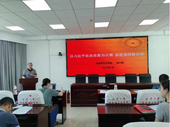 2023年7月13日,公司党委书记何小英在红湘校区南华楼1408会议室讲授“以习近平法治思想为引领,奋进强国新征程”专题党课。
